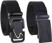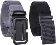 PU Ratchet Sliding Grip Auto Lock Leather Belt For Men With Metal Slider Buckle (Black)