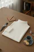 Men Solid High Neck White Sweater