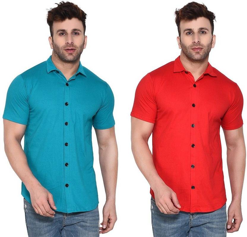 SEEWAYS Men Solid Casual Red, Light Green Shirt (Pack of 2)