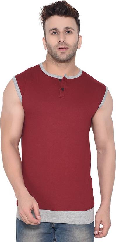 Trendfull Solid Men Henley Neck Maroon T-Shirt