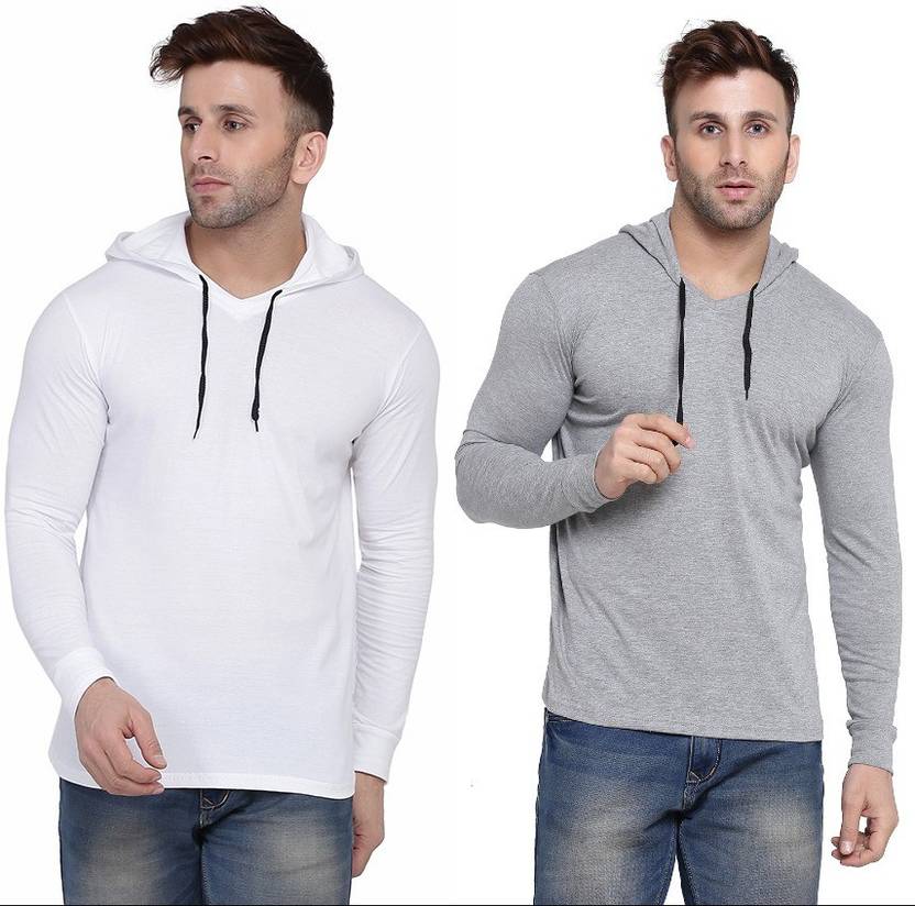 Pack of 2 Men Solid Hooded Neck Cotton Blend Multicolor T-Shirt