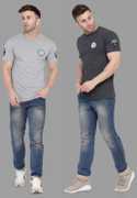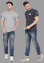 Pack of 2 Men Solid Round Neck Cotton Blend Grey T-Shirt