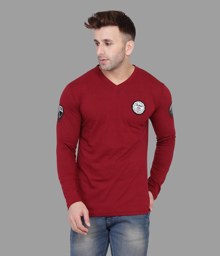 Trendfull Men Solid V Neck Cotton Blend Maroon T-Shirt