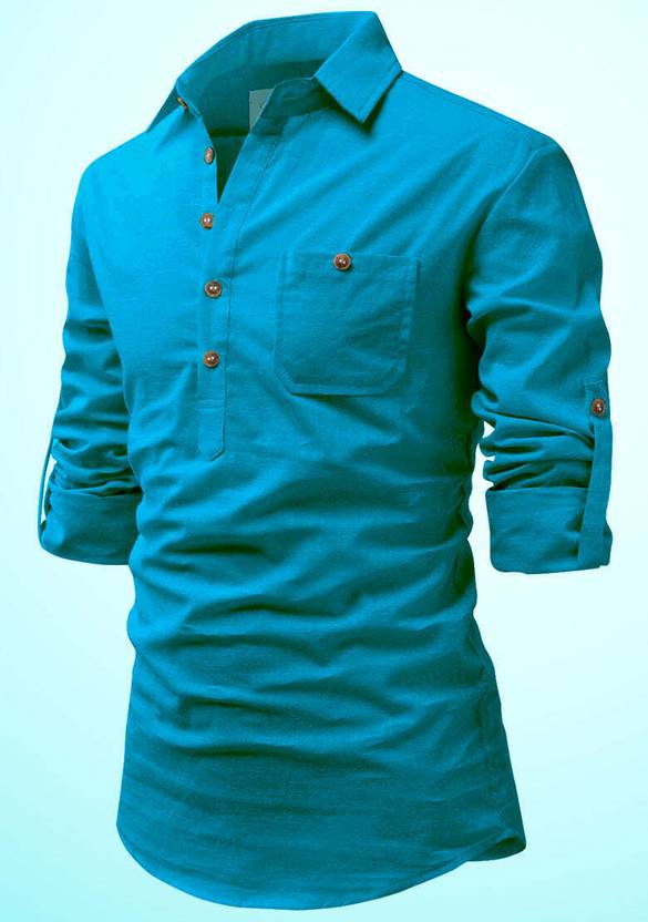 Gender: Men, Pattern: Solid, Closure: Button, Fabric: Cotton Blend, Collar: Spread Collar, Product Length: Short, Hemline: Curved, Sleeves Length: Full Roll Up Sleeve, Pocket: 1 Pocket, Pack of: 1
