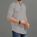 Men Solid Cotton Blend Straight Kurta (Grey)