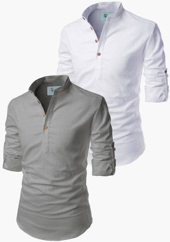 👔✨ Elevate your style game with the TrendiVastra Men's Cotton Blend Fabric Kurta Pack of 2! This combo features a delightful mix of solid hues, including Black & Orange Light, Black & Parrot, Black & Peach, and more.