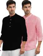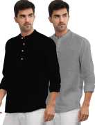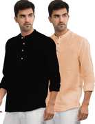 Men Solid Pure Cotton Straight Kurta (Beige)