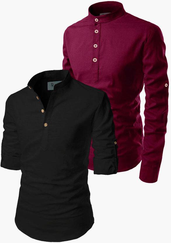 TrendiVastra Men Solid Straight Kurta (Maroon, Black)