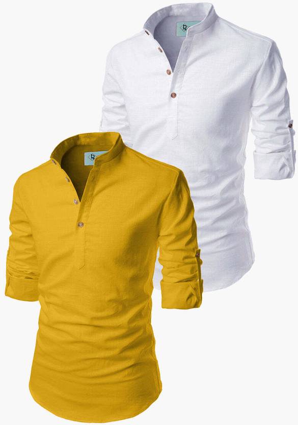 TrendiVastra Men Solid Straight Kurta (Yellow, White)