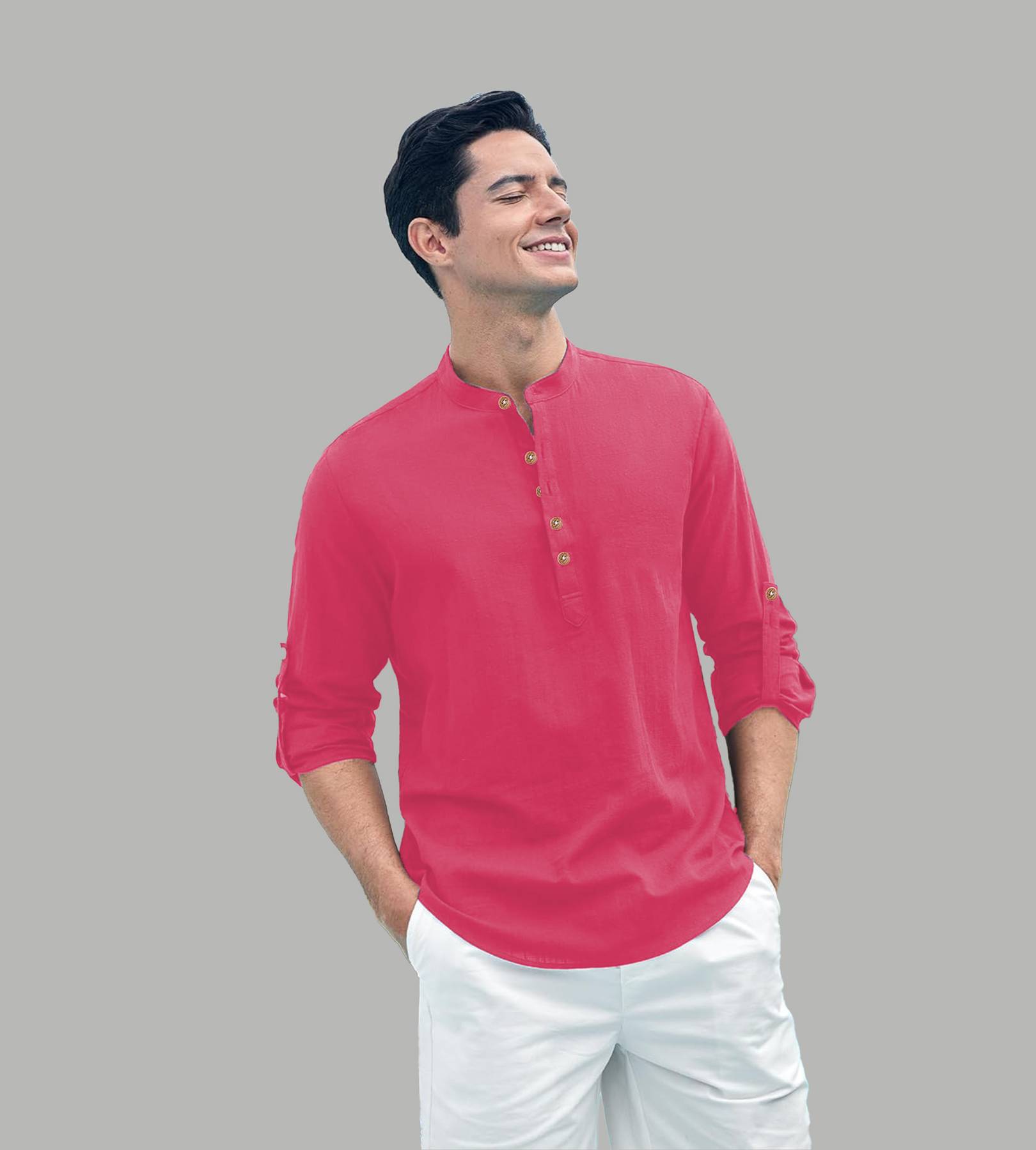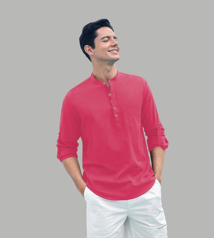TrendiVastra Men Solid Cotton Blend Straight Kurta (Pink)