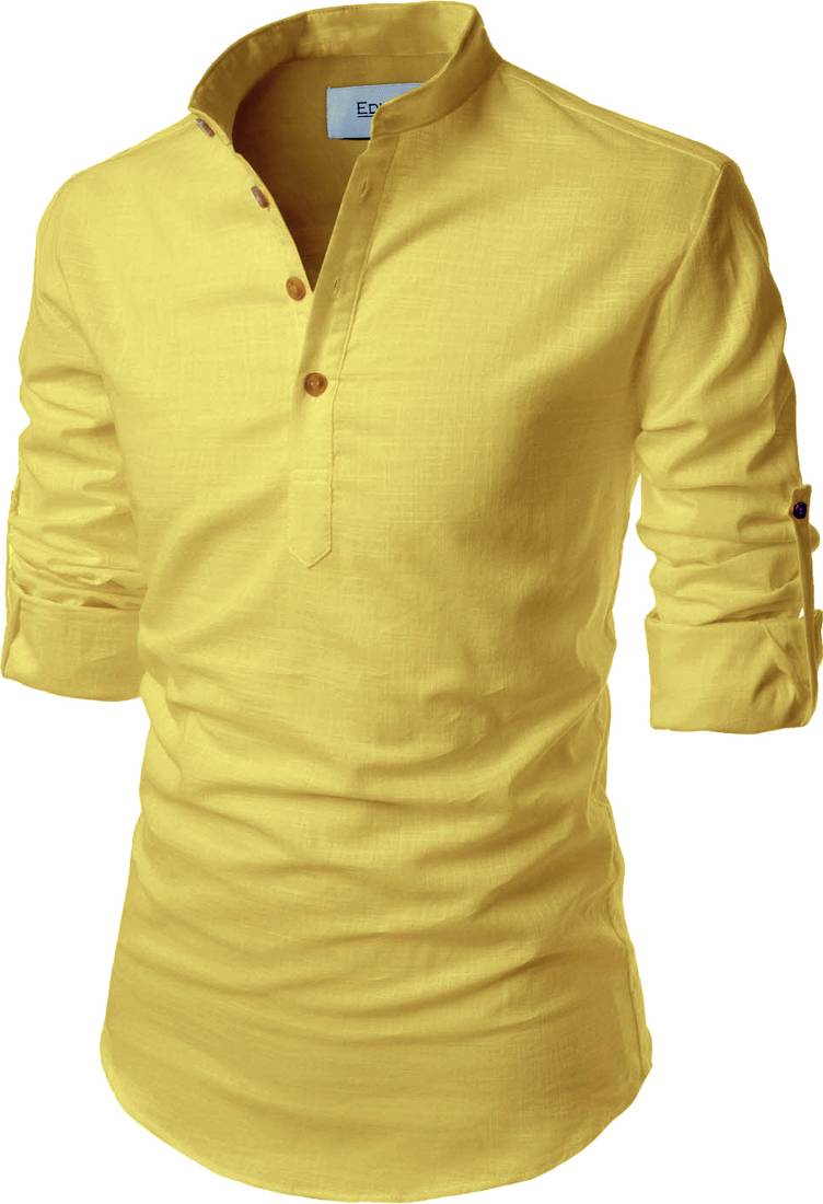Amrit topwear Men Solid Pathani Kurta (Yellow)
