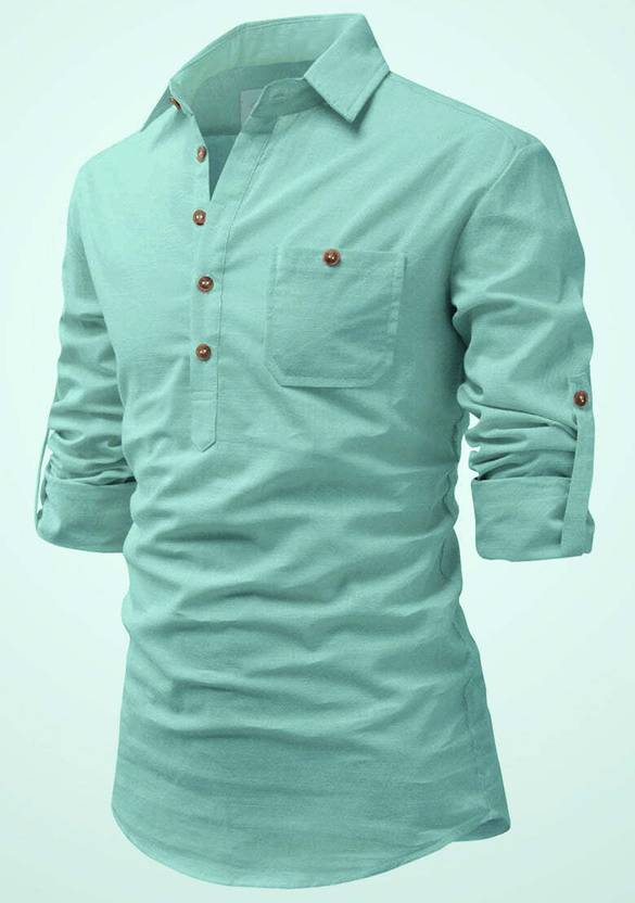 Gender: Men, Pattern: Solid, Closure: Button, Fabric: Cotton Blend, Collar: Spread Collar, Product Length: Short, Hemline: Curved, Sleeves Length: Full Roll Up Sleeve, Pocket: 1 Pocket, Pack of: 1
