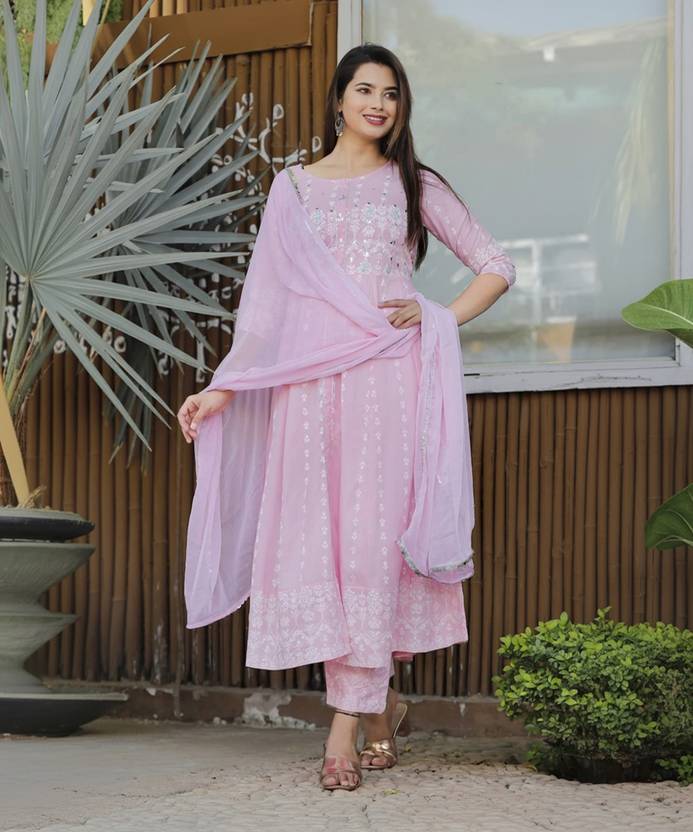 Trendjio Printed, Embroidered Anarkali Kurta, Bottom & Dupatta Set