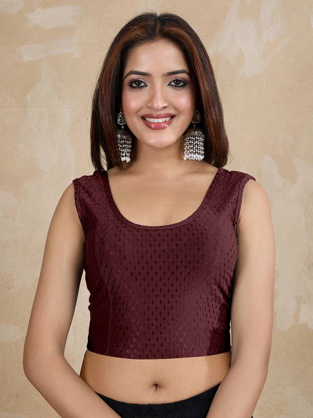 " Trendmalls beautiful Ready to Wear Saree Blouse for women Ready to Wear Stylish Choli Blouse is Roundneck opens from the back and has Sleeveless