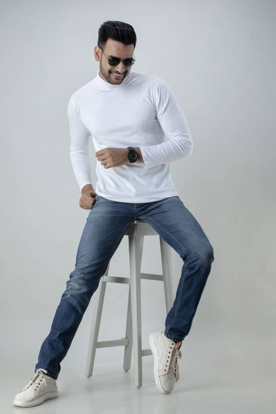 Shop from wide range of Round-Neck plain Highneck full sleeve cotton T-Shirt from Trendolo. Pair this tshirt with jeans or chinos,trousers and get an awesome look. This fabric is soft in touch and it makes feel so comfortable when you wear.