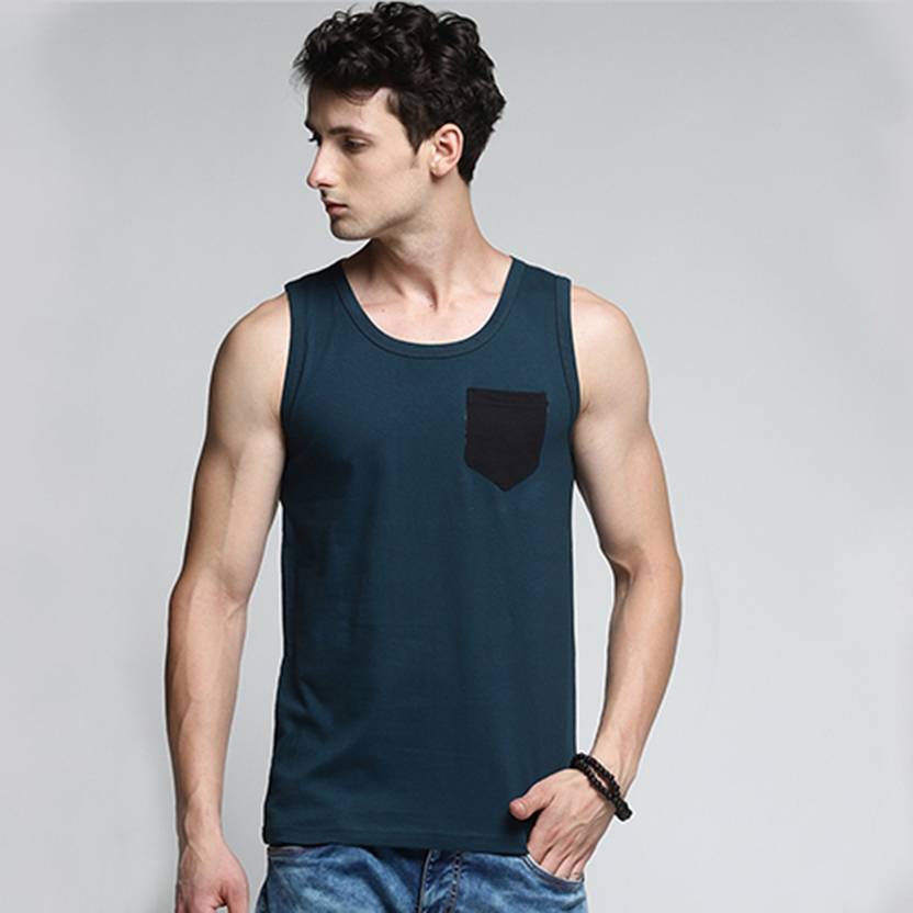 TRENDS TOWER Men Tank Top with Pocket Dark Green Color. Perfect Fitting; Clean Finish; Top Quality; 100% Cotton; Bio Washed; Machine Washable; No Bleaching