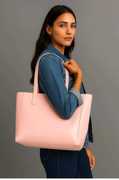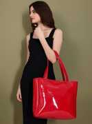 Spacious Tote Bag For Women With Solid Shining Artificial Leather