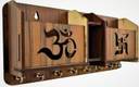TrendsTube Om Swastik Unique Key Hanger With 2 Pocket Mobile/Pen Stand Wood Key Holder (8 Hooks, Brown)