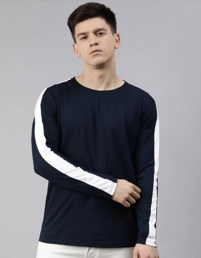 Trendtee Solid Men Round Neck Navy Blue T-Shirt