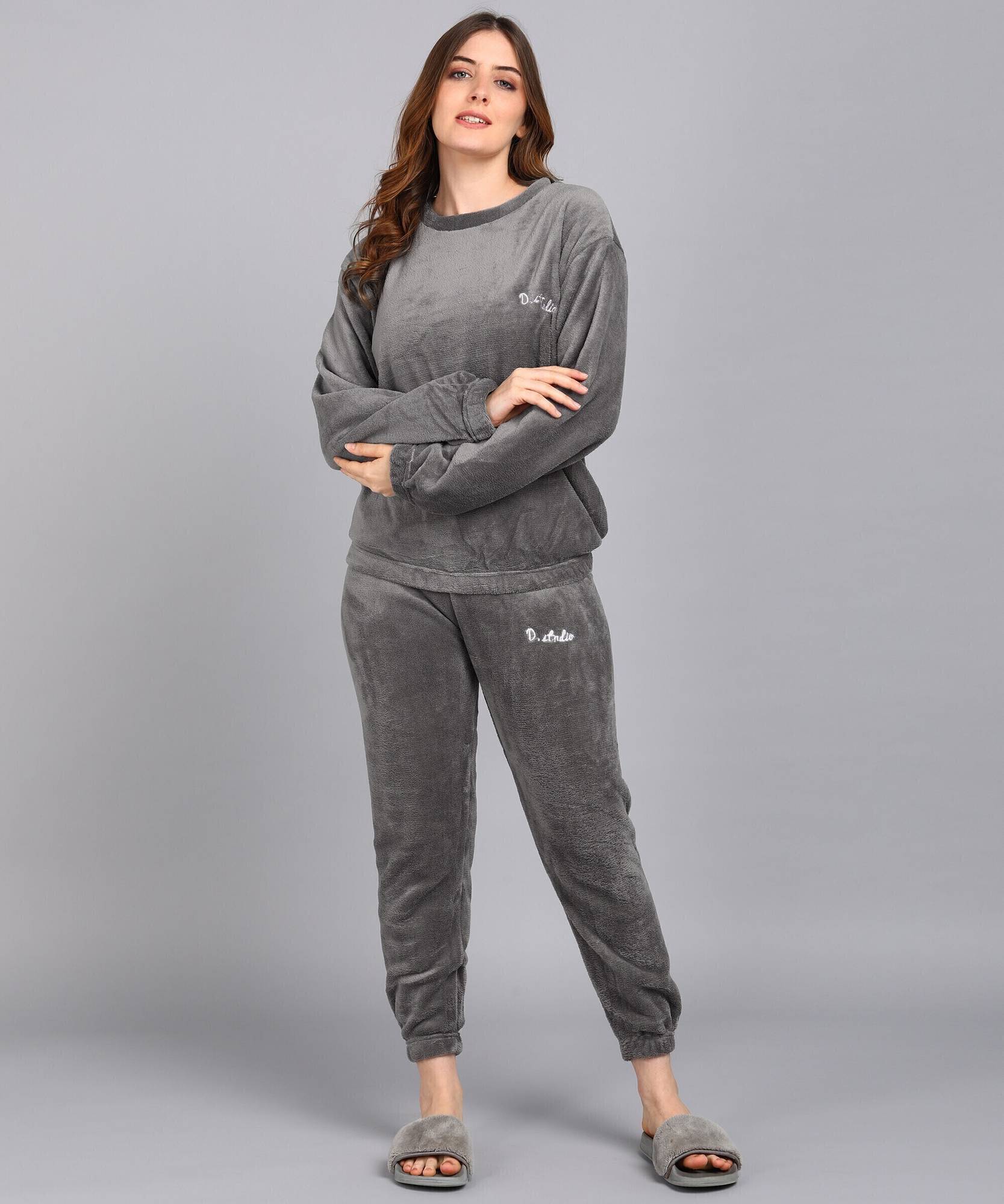 TrendVerse Women Night Suit Set Grey Solid