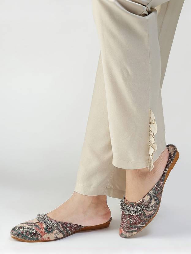 Footwear reflect your persona and your style ,these fashionable mules by house of " TRENDVINE "will keep you stylish ,comfortable and completes your wardrobe , beautiful pasely print and textured design with silver embelishement work makes it a stylish & classic pick, this trendy mules will go with all ocassions!!