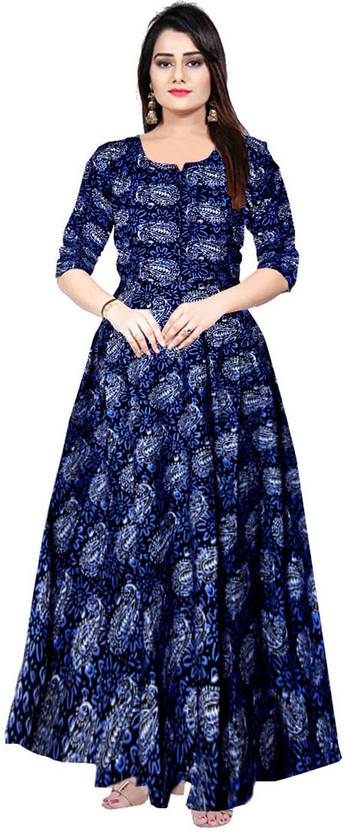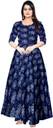 JWF Printed Rayon Blend Stitched Flared/A-line Gown (Dark Blue)