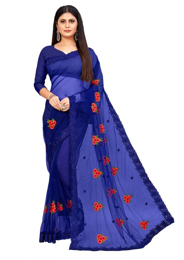 vihara Embroidered Bollywood Net Saree (Dark Blue)