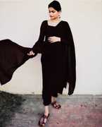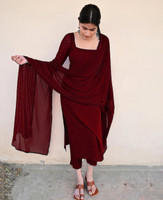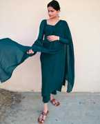 Featuring a solid pattern, this kurta, dupatta, and trousers set effortlessly exudes elegance and simplicity. This kurta boasts a clean design, offering a versatile canvas for various occasions. Additionally, the dupatta complements this ensemble with its subtle yet eye-catching solid hue, adding a touch of sophistication. Moreover, paired with well-tailored trousers, this set embodies a chic, understated charm, making it an ideal choice for both casual outings and special events.