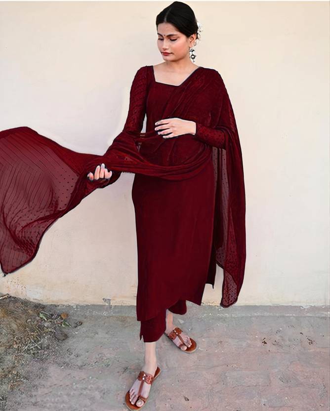 TrendyCreation Solid Kurta, Trouser/Pant & Dupatta Set