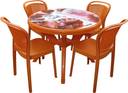 TrendyLivings Round Shaped Plastic 4 Seater Dining Set (Finish Color -Strawberry Orange, DIY(Do-It-Yourself))