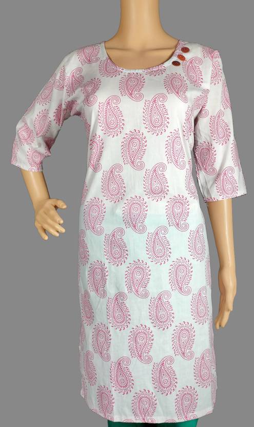 Women Printed Cotton Blend Straight Kurta (Pink)