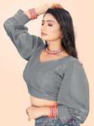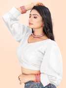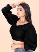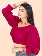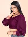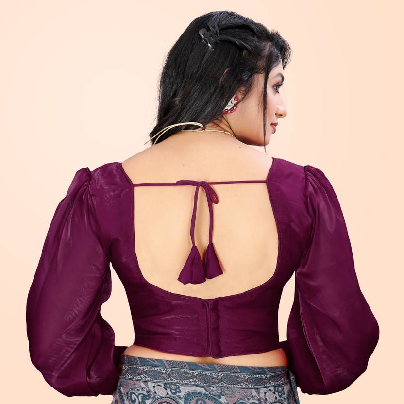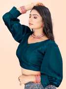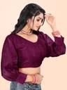 Blouse can shape itself according to body type which provides proper fitting to one. Also the organza silk material will absorb sweating which makes it perfect choice of summer. Well known as manufacturer of designer blouse, brand is famous for its wide range of Festival & Party wear collection for women. Exclusively constructed with absolute perfection this blouse comes with solid work v- neck puff Sleeve back hook & latkan beautiful blouse this blouse is having contrasting classy solid pattern. Casual, party wear, wedding wear collection of readymade blouses. Organza silk is really comfortable against the skin and this ensures that you remain at ease all day long.