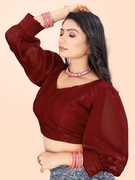 Readymade Women's Best Quality Organza Fabric With Stylish Long Sleeve Design, Blouse Up To (32-38)