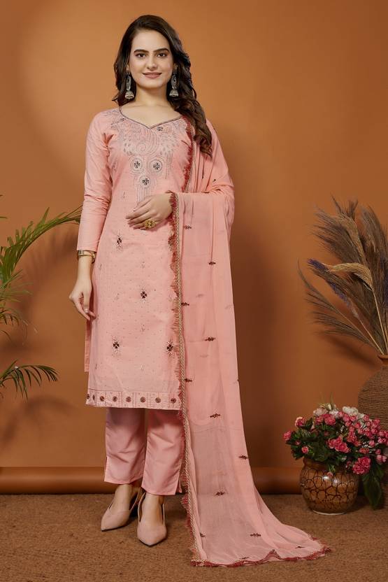 Unstitched Cotton Blend Salwar Suit Material Embroidered