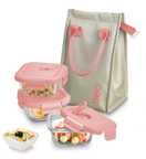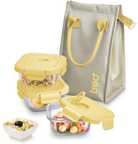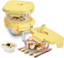 TREO Lumino Fresh Square Borosilicate Glass Lunch Box Set of 3 Yellow 320ml Each, Bag 3 Containers Lunch Box (320 ml)