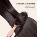 Daily Care | - Detangle Gently: Use a wide-tooth comb or a specialized extension brush to remove tangles. Start from the ends and work your way up to avoid breakage, Frequency: Wash every 7-10 wears or as needed, depending on the product build-up and environment., Clean Scalp and Hair: Make sure your hair is dry and free of oils, which can make clips slip, Avoid Excess Touching: Constantly touching or adjusting the topper can lead to tangling and wear, Carry a Small Brush: Keep a travel-sized detangling brush handy to smooth out any knots that form throughout the day, Shield From Harsh Conditions: Wear a hat or scarf if exposed to extreme sun, wind, or rain to protect the topper, Conditioner: Apply a light conditioner to the mid-lengths and ends, avoiding the base where the clips are attached.