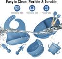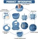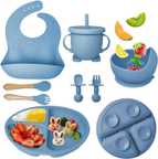 ?Silicone Baby Feeding Set?You'll get 1 x adjustable bibs with food catcher, 1 suction divided plate, 1 suction bowl, 1 training straw sippy cup, 2 x spoon and 2 x fork. We adopted food grade silicone which is free of BPA, PVC, and Phthalate. Perfect for the first stage of baby led weaning, help your baby transition to self feeding in a better, cleaner, safer way.