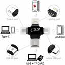 Compatible with all major mobile devices including Iphone, with four interfaces: Lightning connector is for iOS devices Micro USB connector is for Android devices; USB connector is for computers/Macs; Type-C connector is for Type-C devicesLightning devices must download Free Storage APP Named iUSB Pro. Adding an memory card,turns card reader into a flash drive:Manage all your data directly, playback videos music,images backup and restore your contact list,document viewer on the devicePlug and play, lightweight & portable, no driver needed, Best Gift for your friend or familySupport 8G~128G TF card(NOT Included)