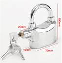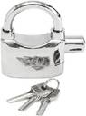 Keep your bike, garage door, garden shed, side gate, tool box or locker or anything you desire secure with this heavy duty 110db siren alarm padlock. This innovative u lock comes equipped with two settings, armed and unarmed, so you can be alerted by a 105 - 120 db alarm when the lock is tampered with, basically, double the protection. The heavy duty siren alarm padlock has a body made of extra strong cast steel, high-grade steel shackle. It is resistant to corrosion, bad weather, physical destroy and waterproof. Features: Low false alarm rate. Low power consumption. Corrosion resistant, waterproof and durable to use. Powered by six button batteries. Supplied with three keys, convenient to use. Note: When you place the shackle with groove into lock near key port, then the lock comes into alarming state. When the shackle with groove is placed away from key port, the lock is just in the mechanical lock state. Specifications: Color: black Material: zinc alloy Alarm decibel: 120dB Power supplied by: 6 * AG13 button batteries Lock size: 7 * 3.3 * 9.8cm/ 2.7 * 1.3 * 3.8in Lock weight: 313g/ 11oz Package size: 17 * 13.5 * 4.2cm/ 6.7 * 5.3 * 1.6in Package weight: 374g/ 13.2oz