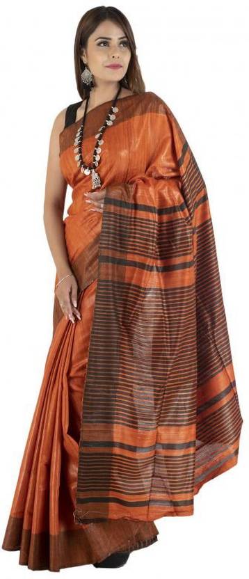 Self Design Daily Wear Tussar Silk Saree (Orange)