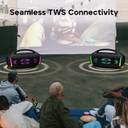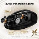 Explosive 200W Output: Featuring an 80W subwoofer with diamond reinforcement ribs, dual 45W mid-range drivers, and two 15W tweeters, this speaker for party delivers precise beats and notes. Its 2.1 channel design, powered by two advanced TI amplifiers, ensures balanced and dynamic sound, while dual large passive radiators enhance the bass for deeper resonance.
