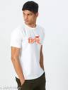 triconium Men Typography, Printed Round Neck Cotton Blend White T-Shirt