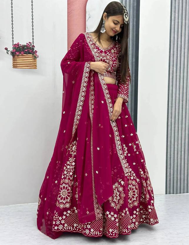 Trijal Fab Embroidered Semi Stitched Lehenga Choli (Pink)