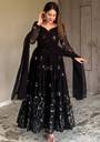 Step into elegance with this stunning Anarkali-style set crafted from premium Georgette Fabric and lined with soft Micro Silk Inner for extra comfort. The outfit features intricate Sequins Embroidered Work on the yoke and dupatta, adding a touch of shimmer and sophistication. The flowy silhouette and full-flair hemline enhance your grace at every move. Perfect for festive occasions, weddings, and evening parties. This ensemble combines ethnic richness with modern finesse.Anarkali Dress, Georgette Anarkali, Embroidered Anarkali, Designer Anarkali Suit, Party Wear Anarkali, Sequins Work Dress, Full Flair Anarkali, Long Anarkali Gown, Ethnic Dress For Women, Indian Wedding Dress, Floor Length Anarkali, Stylish Festive Dress, Gown Style Suit, Traditional Dress For Women, Fancy Anarkali Kurti, Heavy Work Anarkali, Micro Silk Inner Dress, Engagement Outfit, Reception Dress For Women, Ethnic Wear Gown.