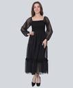 This fit and flare poly dress is a perfect blend of elegance and style, making it a must-have in every woman’s wardrobe. These dresses for women is designed with a fitted bodice that accentuates the waist, and a flared skirt that adds a playful and feminine touch. Made from high-quality polyester, the dress is comfortable and durable, making it suitable for all seasons.It can be worn as party wear dress