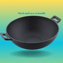 • This Sleek Cast Iron Kadhai is suitable for all kinds of food like Curries ,Gravies and Deep fries.