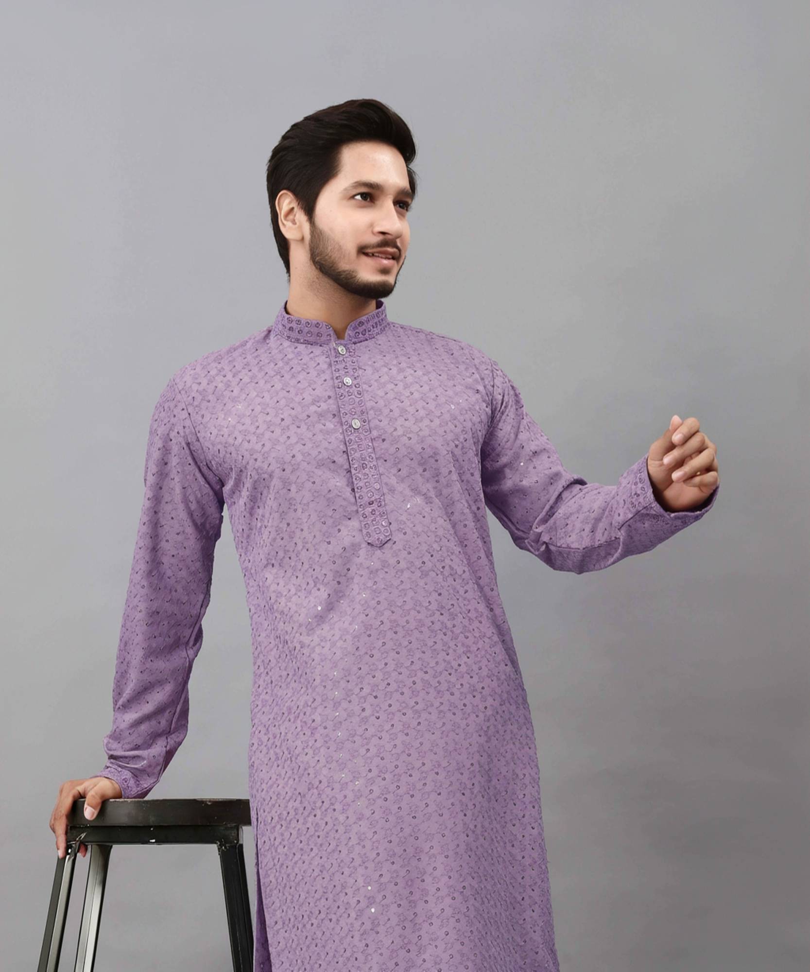 Look your ethnic best by wearing this fashionable fashionable kurta and payjma set, which has been designed keeping the latest trends in mind. Tailored from fine quality fabric and fashioned with a chinese collar for a dash of style. This kurta and payjama set is comfortable to wear and easy to maintain. It is a great addition to your wardrobe and will win you compliments from one and all.
