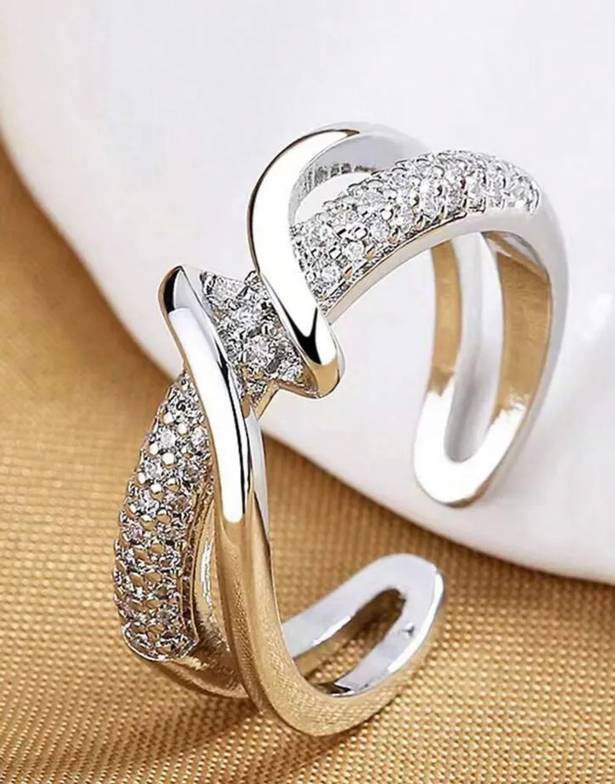 Enhance your everyday style with this elegant silver-tone adjustable finger ring, designed with a modern twist pattern and sparkling stone embellishments. Crafted with a smooth polished finish, this ring adds a touch of sophistication to both casual and party looks. The adjustable open design ensures a comfortable fit for most finger sizes. Ideal for daily wear, office use, parties, or gifting, this stylish ring blends contemporary fashion with timeless charm. A perfect accessory to elevate your jewellery collection.