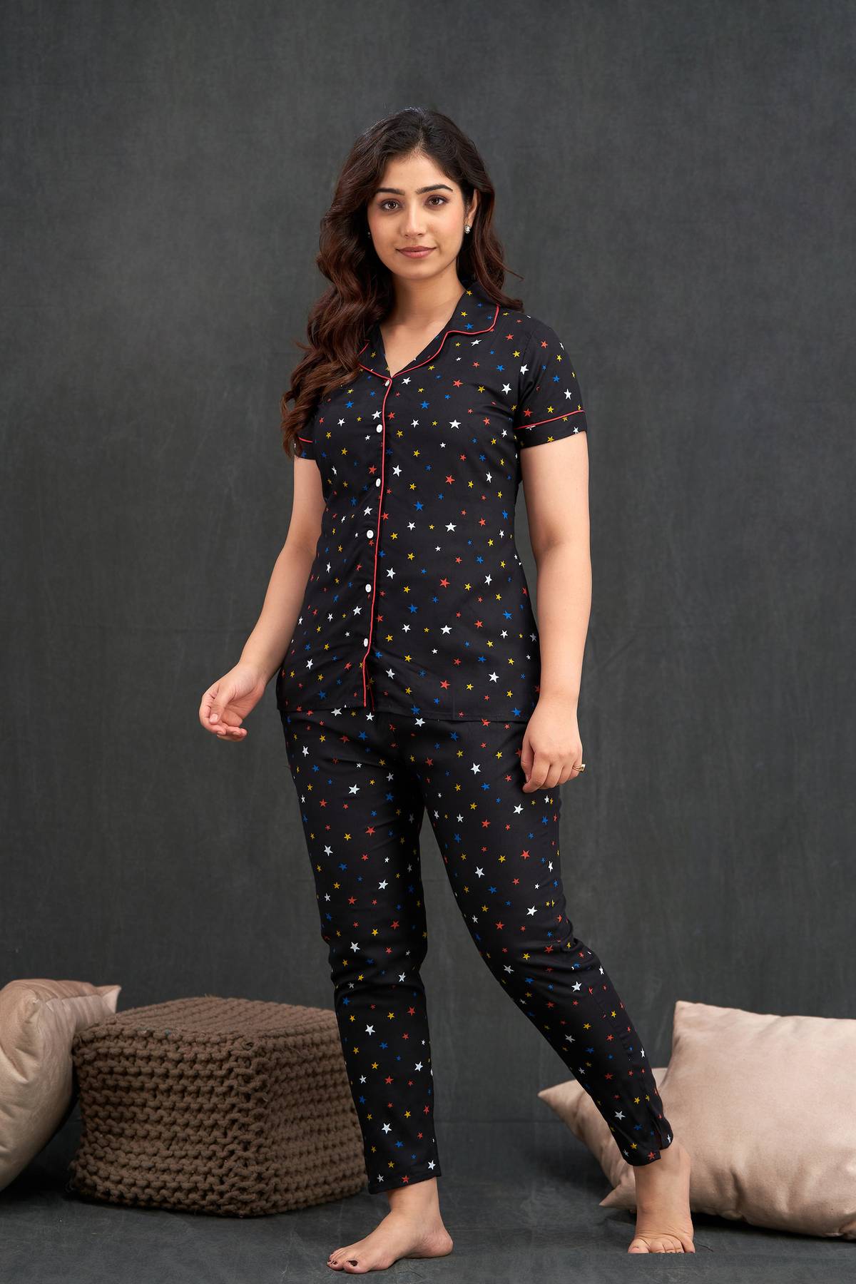 TRINABH Women Nightdress (Black)