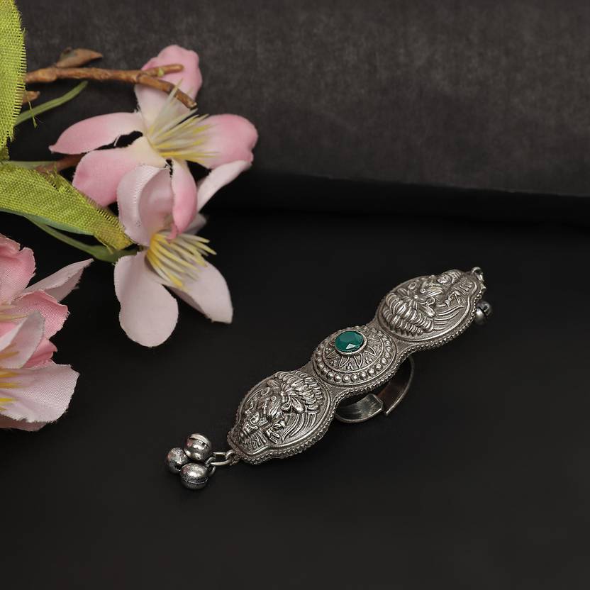 Trink Silver Plated Oxidised Metal Free-size Big Ring with Green Stone for Girls and Women |Oxidized Oversized Ring | Fashion Jewellery Latest design oxidised Ring.